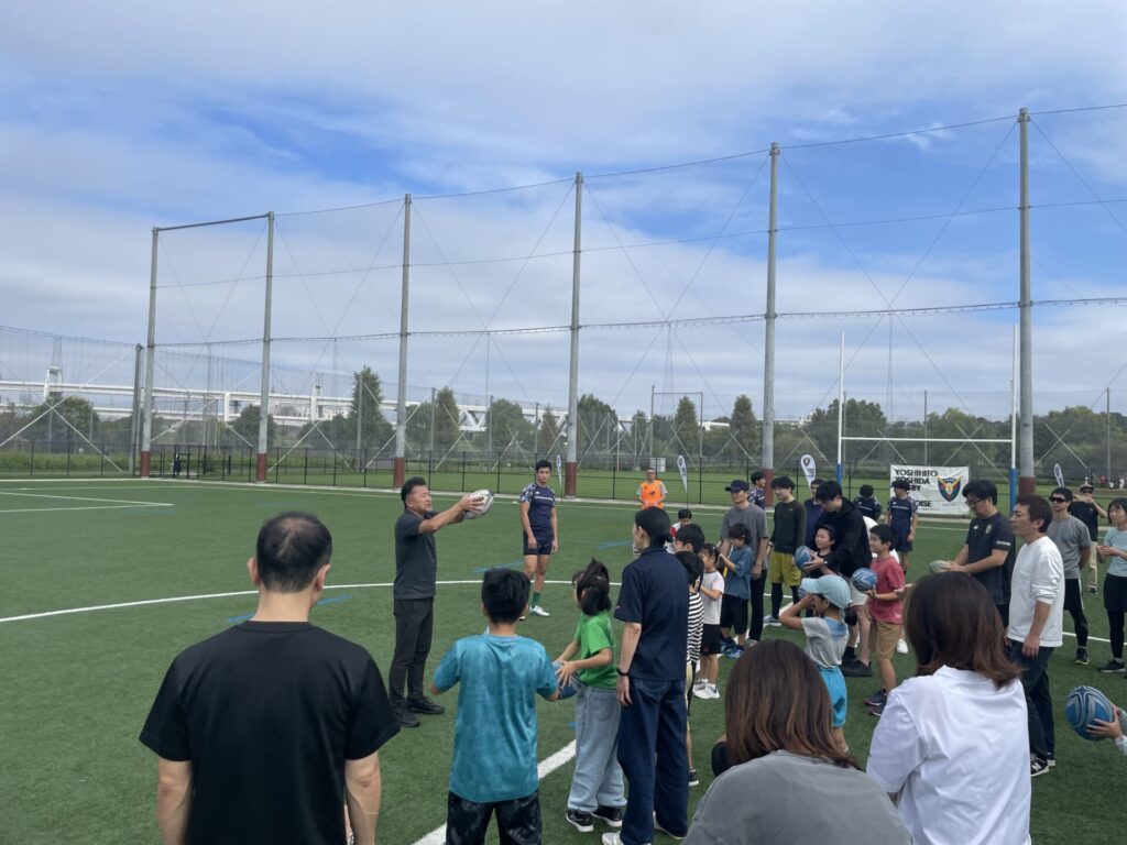 そして、この活動を続けられているのは、ラグビーを心から愛し、その魅力を子どもたちに伝えたいと集まってくれる元ラガーマンの仲間たちの存在があってこそです。毎回、彼らはボランティアとして現場に足を運び、親子に寄り添いながら全力でサポートしてくれます。同じ志を持つ仲間と共にグラウンドに立てることは、本当に嬉しく、誇らしい瞬間です。